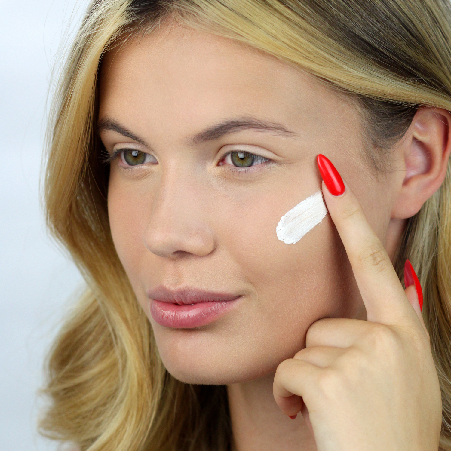 指先でMoyra GenZ Ace of Base ファンデーションを鼻、顔、あご、額にのばします。その後、円を描くように肌になじませます。手またはMoyra GenZ Magic Makeup Sponge、ファンデーションブラシをお使いいただいても結構です。